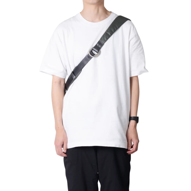 Master-piece's latest "Ark Solid" shoulder bag is constructed using a lightweight yet highly durable nylon fabric, woven with 70d warp and 160d weft fibers, ensuring both strength and flexibility. To enhance its performance, the inner side of the fabric is laminated with a specialized microporous membrane film produced by Toray Coatex Corporation under the Breathatec® brand. This membrane, combined with a tricot nylon backing, offers the bag exceptional water repellency and breathability.