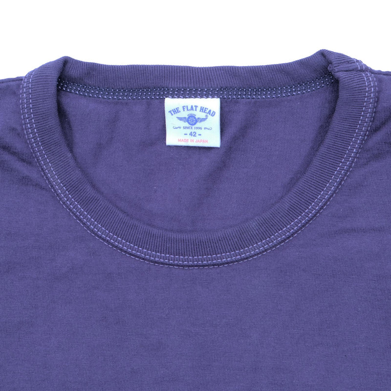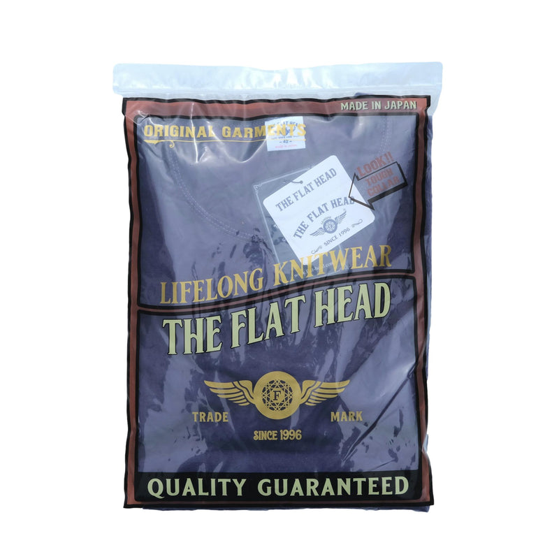 Beneath the design lies one of The Flat Head’s signature technical achievements: the “three-needle, one-off” neck construction. Inspired by vintage American tees and refined through the brand’s own experimentation, this method employs thick No. 20 cotton thread stitched in three passes - two along the rib and one along the body. The result is a neckline that resists stretching even after years of wear.