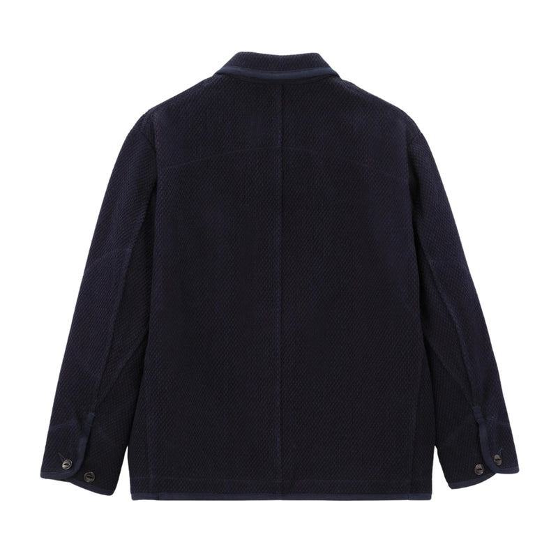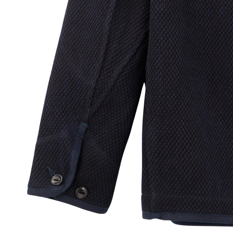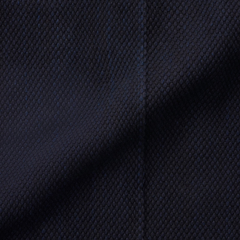 A storied Sashiko that draws its roots all the way back to the Tenmei era (1781-1789) of Japanese history, “Bushu” Sashiko is always dyed in Natural Indigo and produced in the cities of Hanyu & Kazo, in Saitama Prefecture. A double-weave Sashiko construction, the face of the fabric is a dark indigo (Kon in Japanese) and the inlay of the fabric features lighter indigo hue yarns (Asagi in Japanese).