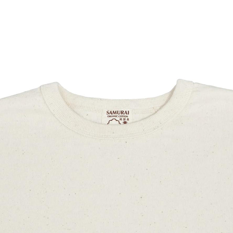 Samurai have gone above and beyond in the pursuit of creating a truly premium-feeling tee, with absolutely no corners cut from start to finish. The yarns are composed of Samurai's homegrown cotton yarns, which are grown on a small farm in the sleepy town of Sasayama, Hyogo. The cotton itself is grown without the use of pesticides or fertilizers and the planting, weeding and picking are all done by Samurai team members, along with family and friends of the brand. Growing cotton in this type of manner is extremely tedious and yields a very small amount but results in yarns full of character - ultimately leading to the fabric woven in Wakayama that is supremely soft.