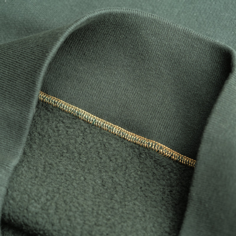 While retaining the über fluffy hand feel and texture of the original Tompkins sweat fabric, the revived Sinker method creates a beautiful loop structure that optimizes the best that the vintage Sinker knitting machines have to offer. With the revival also came updated calibration to the half-a-century-old knitting machines, eliminating inconsistencies that were commonplace during that foregone era, yielding a balanced brushed fleece fabric.