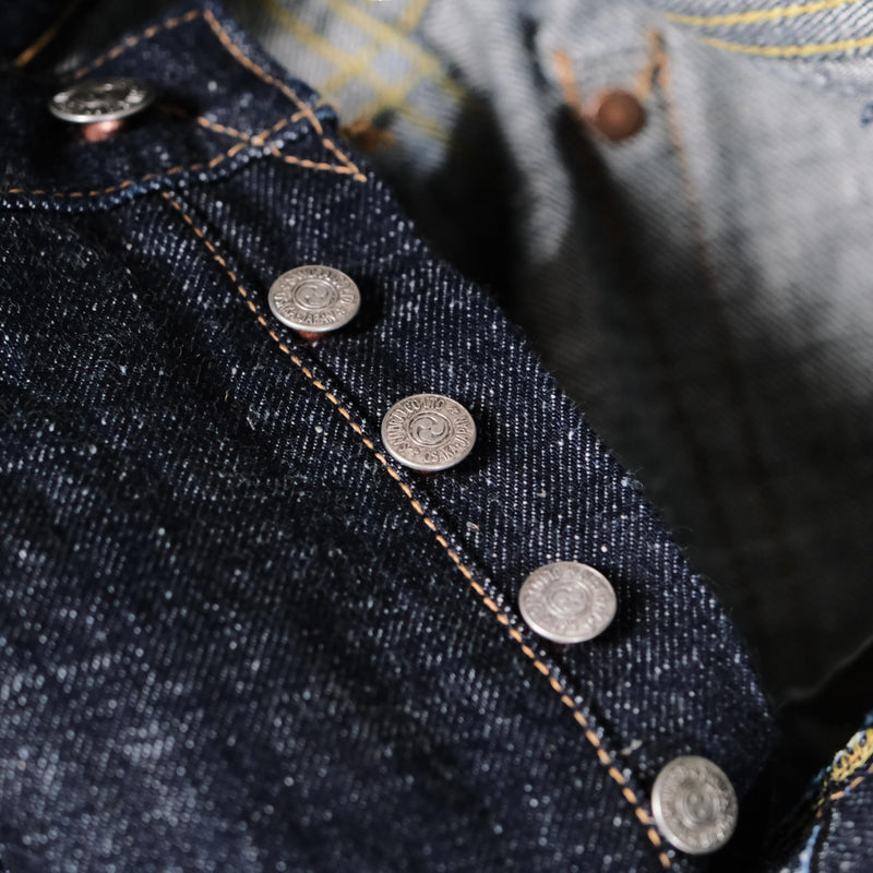 The “G3” shuttle loom is renowned as being the first machine to weave Japanese Selvedge denim locally, and with further improvements and innovation came the direct successor, the “GL3” shuttle loom. Milled on these elusive looms, Samurai's latest denim embodies the raw, organic texture that only true vintage machinery can achieve. The fabric combines 100% Texas cotton warp yarns, rope-dyed to a deep, slightly blue-toned indigo reminiscent of 1950s denim, featuring Samurai’s homegrown “Samurai Cotton” weft. The result is a fabric full of neppy irregularities and a rugged hand feel that speaks to the authenticity of early denim craftsmanship.