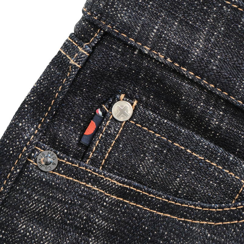 For this fresh denim development, we have renewed the construction details which will become a mainstay in our new lineup. Along with the heavyweight Tochigi leather patch and indigo-dyed pocket bags featuring updated logo artwork, we also developed a blue and red rayon tab to represent the Japanese “Rising Sun” Flag and Indigo Blue.