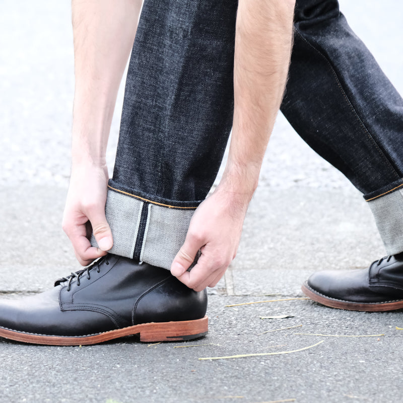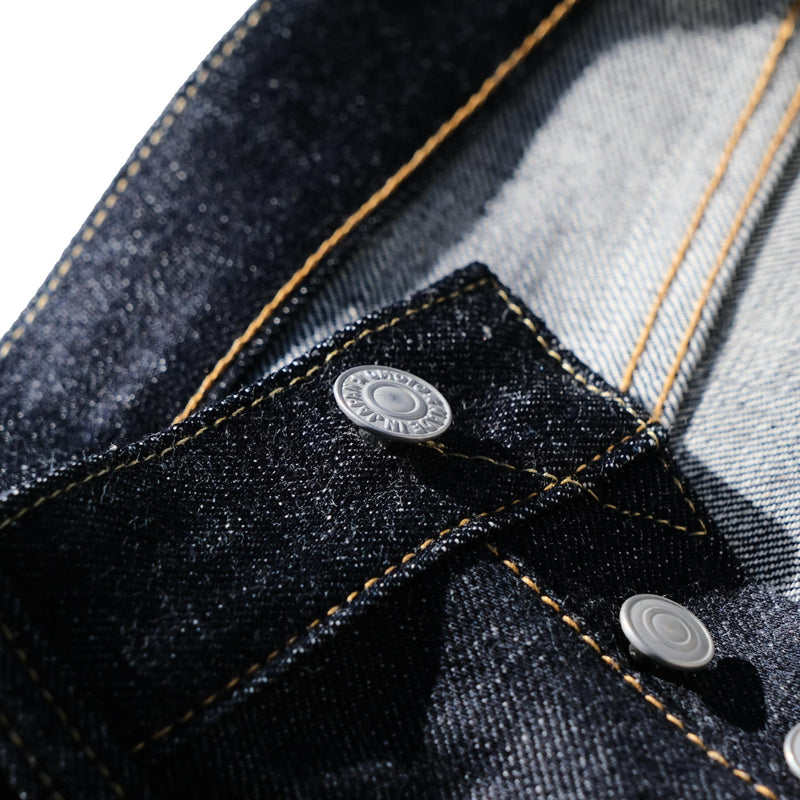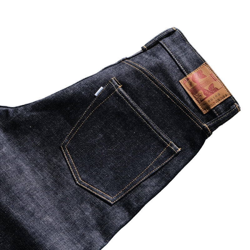 At the heart of Omoto is the denim which has been milled on vintage Sakamoto looms from the 1950s. The fabric is comprised of a bi-blend of Texas and Zimbabwean cotton, an amalgamation of toughness and softness. The resulting denim bursts with texture and has a crisp hand feel. Rope-dyed in pure indigo, the warp yarns exhibit a deep blue hue with the core remaining undyed to guarantee beautiful fading down the line. The jeans are sensibly cut with three variations of a straight cut ranging from wide to just a touch slim.