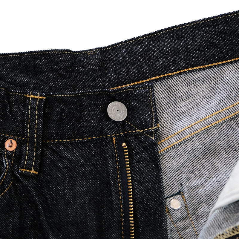 At the heart of Omoto is the denim which has been milled on vintage Sakamoto looms from the 1950s. The fabric is comprised of Zimbabwean cotton, an amalgamation of toughness and softness. The resulting denim bursts with texture and has a crisp hand feel. Rope-dyed in pure indigo, the warp yarns exhibit a deep blue hue with the core remaining undyed to guarantee beautiful fading down the line. The jeans are sensibly cut with three variations of a straight cut ranging from wide to just a touch slim.