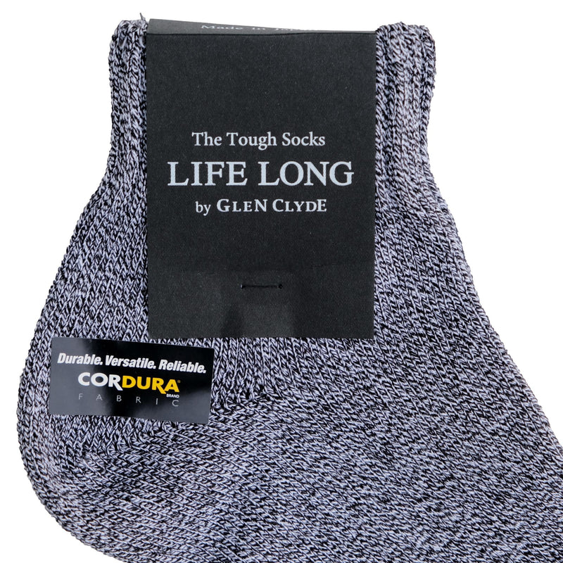 Built to last an absurdly high amount of wear, Chup's "Life Long" range of socks feature Cordura yarns. Boasting 7 times as much strength as normal yarn, Cordura is regularly used in various bag and outdoor goods products. These socks have a certifieddurability of 6 to 10 times more than ordinary cotton socks, which has been scientifically tested and verified by Cordura's parent brand Invista.