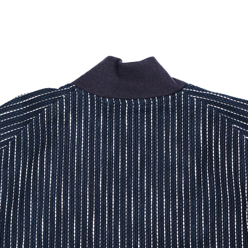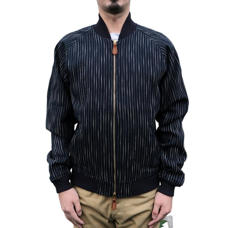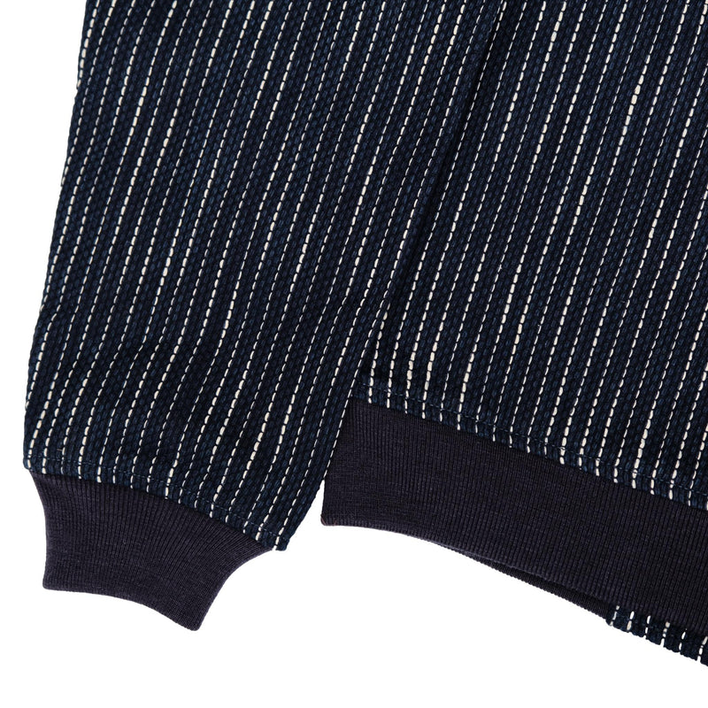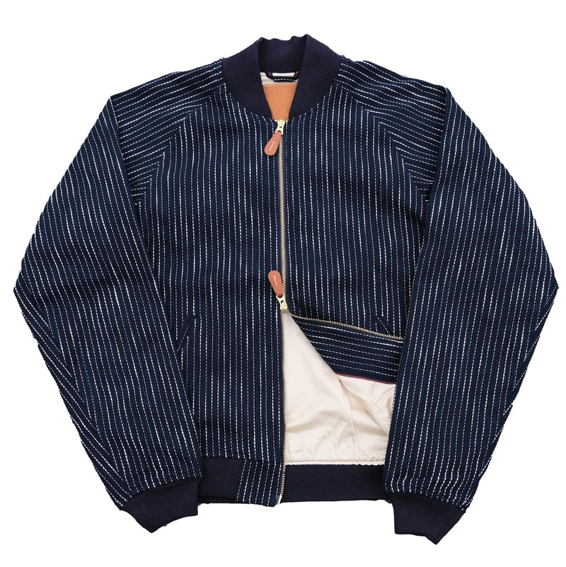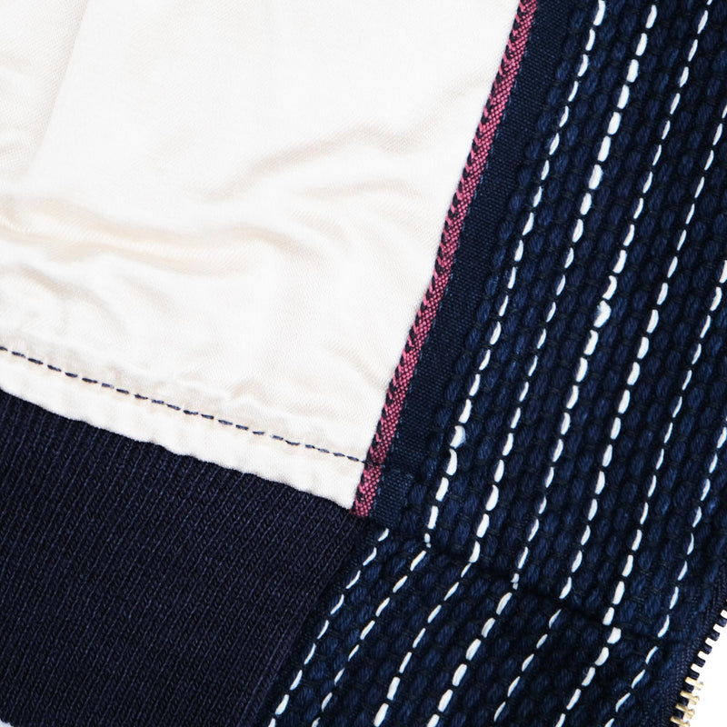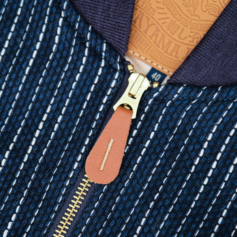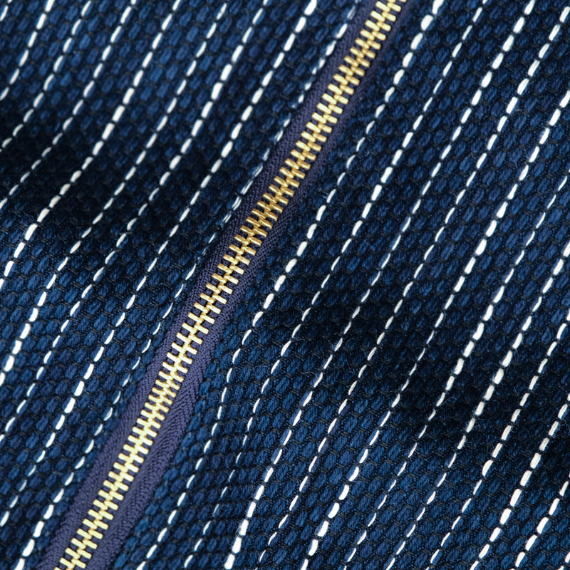 For our latest OD+SDA Bomber Jacket project, we decided to opt for a fabric we fell in love with back in 2024 that was part of SDA's inline collection. This time we feature the convergence of Kasuri-dyed yarns and tedious weaving that is a marriage of hues and heritage, evoking the essence of Japanese tradition. The distinctive indigo-dyed Sashiko fabric called "Ame Gasuri," or "Rain Kasuri", is renowned for its unique and intricate patterns that capture the essence of falling raindrops. It is created by the careful arrangement of Kasuri-dyed and undyed threads, allowing the weaver to craft irregular, broken straight lines that mimic the appearance of rain falling. This motif, first developed during Japan’s Edo period, embodies the "wabi-sabi" spirit, finding beauty in simplicity and imperfection. Historically, Ame-Gasuri garments were cherished for their quiet elegance and connection to nature, reflecting a harmony between craftsmanship and the natural world.